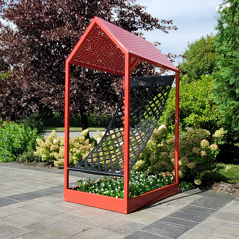 En stock plusieurs unités de la Maisonnette Hamac Tiny et Deux par Deux avec comme nouveauté en 2024 des tablettes d’appoint. Cette installation a fait ses preuves sur plusieurs installations évènementielles comme au Quartier des Spectacles de Montréal et Westmount. Durables, démontables, elles attirent les gens à la détente.