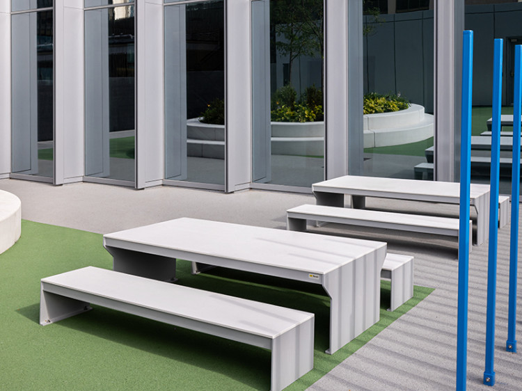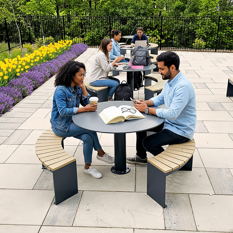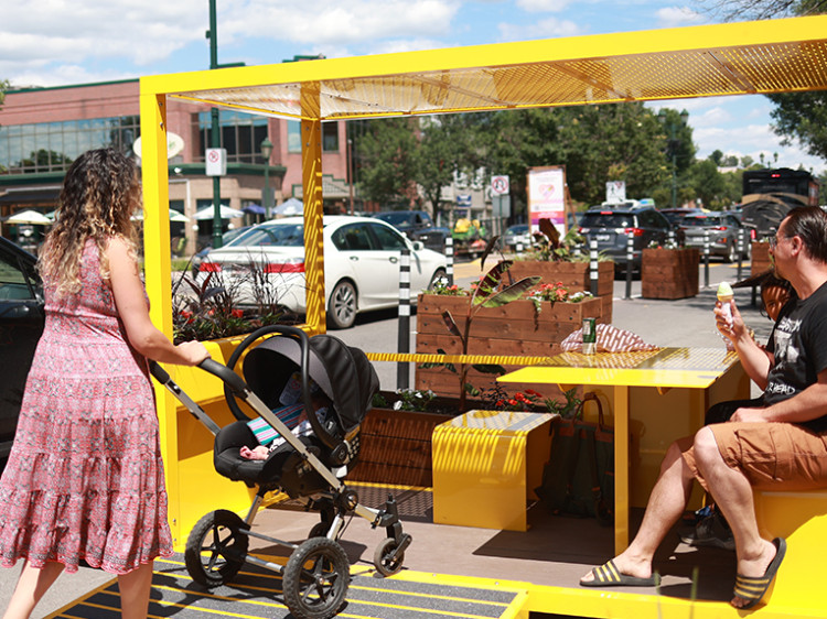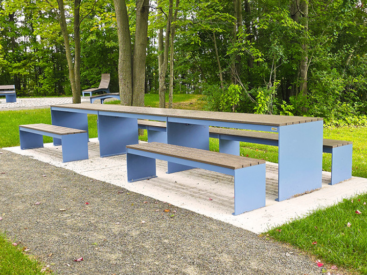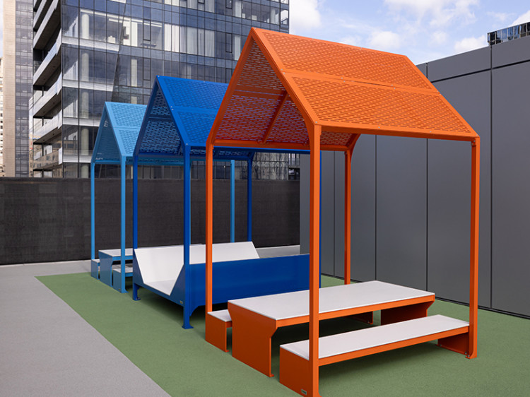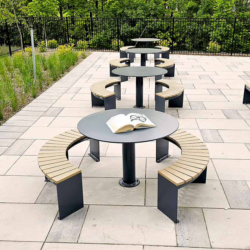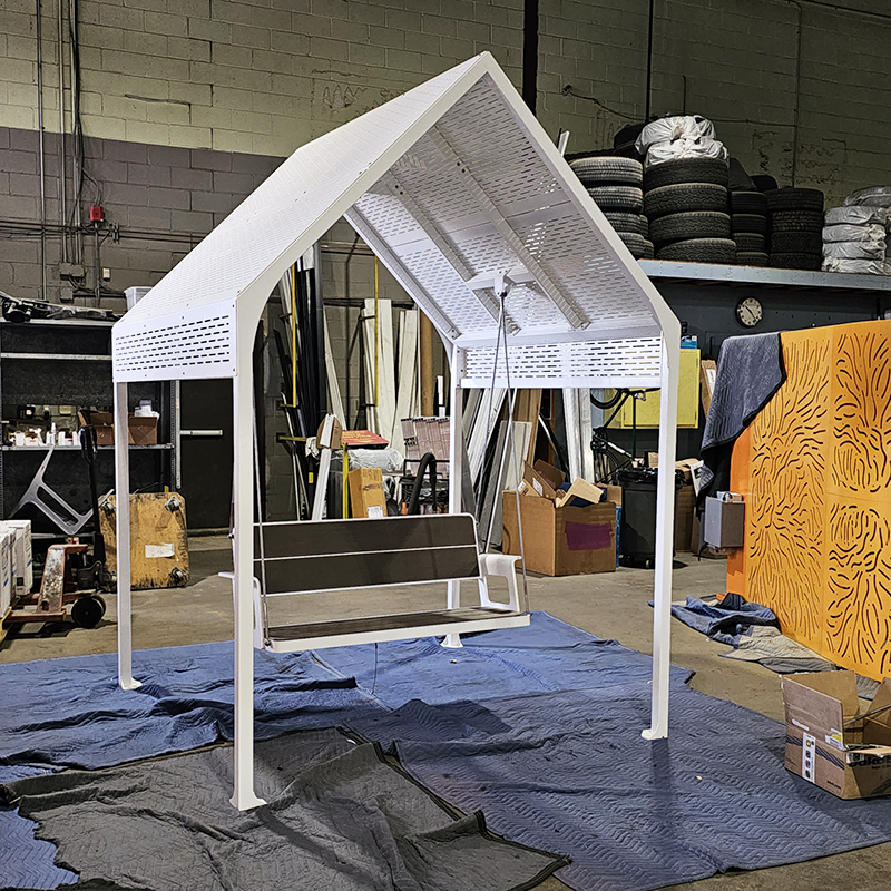 Balancelle urbaine – Table pique-nique – Table pique ADA – Table pique avec abri solaire – Maisonnette urbaine – Hamac urbain – Chaise longue urbaine – Mobiliers espace collaboratif – Stationnement à vélos – Banc urbain – Mobiliers transitoires – Rue piétonne – Place éphémère – Espace commercial – Toit-terrasse