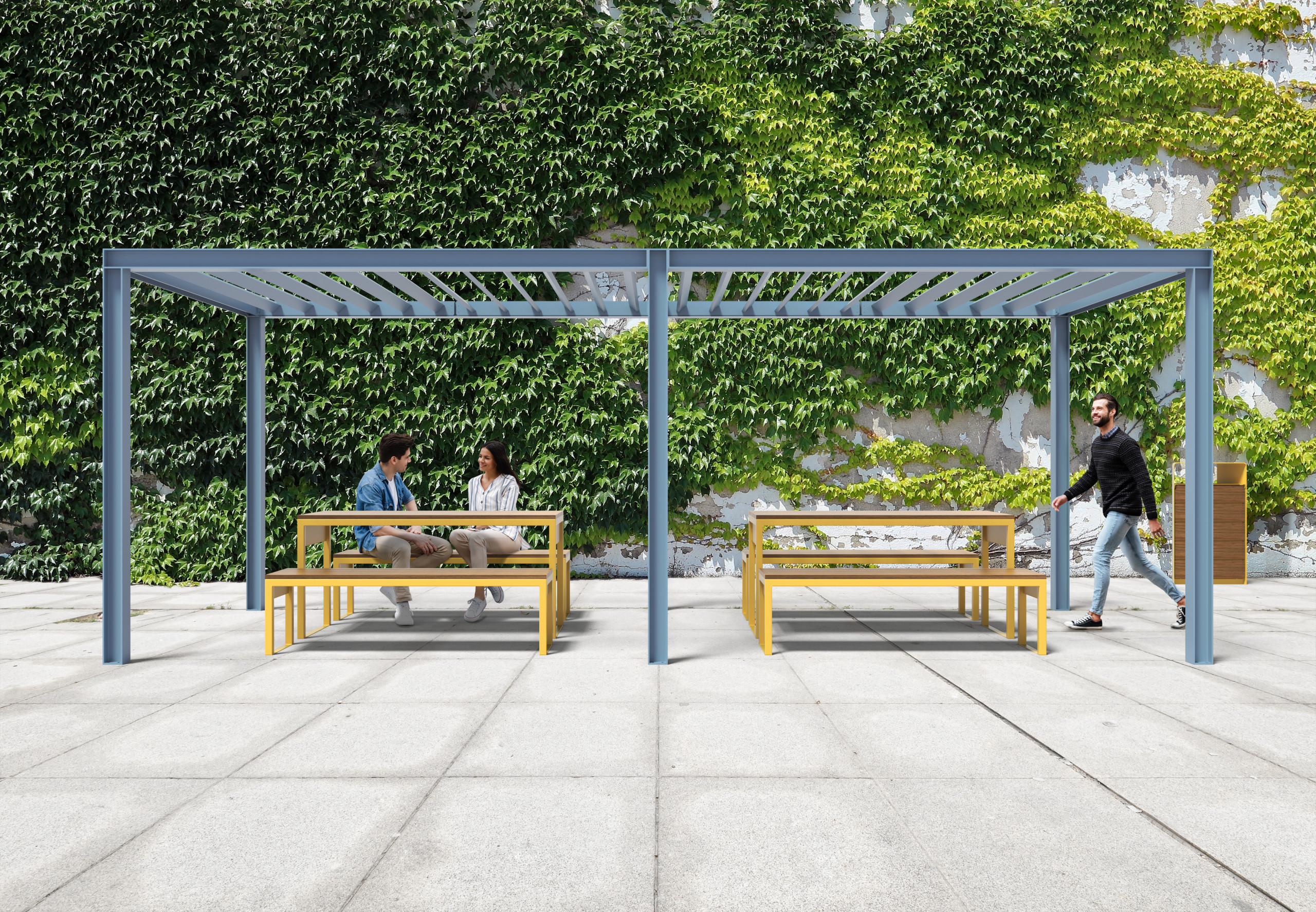 Nos pergolas urbaines modulaires sont conçues pour être livrées et intégrées harmonieusement avec nos collections signatures de mobilier urbain : les chaises longues BELLA VITA, ou INFINITO, les table pique-nique Infinito, table Pique-nique modulaire INFINITO, Table ronde CÉLESTE, les chaises Hamacs, les Bancs circulaire ORIGINE ou SPAAZ, les Bancs ou les Tables RECTO, et le mobilier BISTRO. Nos représentants vous guideront pour sélectionner les combinaisons les mieux adaptées à votre projet.