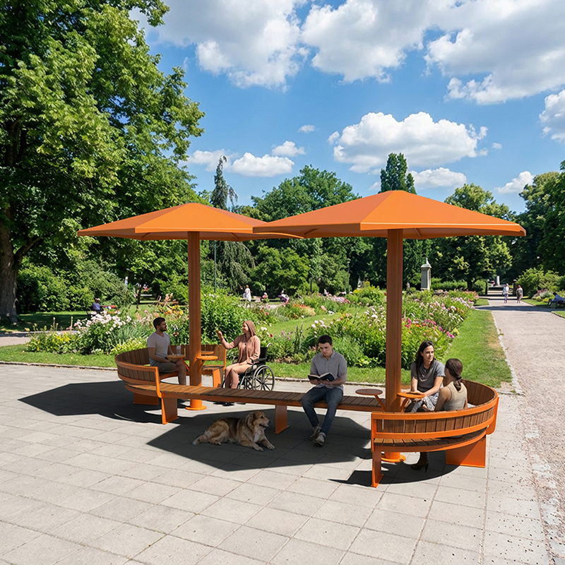 La PERGOLA URBAINE, le PARASOL 4 SAISONS ou encore la MAISONNETTE peut se combiner aux modules de bancs offrant ainsi une versatilité de configurations impressionnantes en s’adaptant aux multiples ambiances et expériences désirées valorisant les aménagements sur les terrasses de toit ou les aménagements d’espace scolaire et urbain.