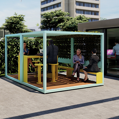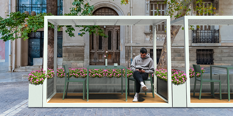 La collection Cabana offre des solutions de mobilier urbain ou commercial inclusif adapté à la piétonnisation des rues et aux espaces collaboratifs dans un contexte professionnel ou scolaire. Ce mobilier encourage les rencontres humaines et la productivité dans une ambiance hors du commun afin d’occuper les lieux tout en incluant les personnes avec une mobilité réduite.