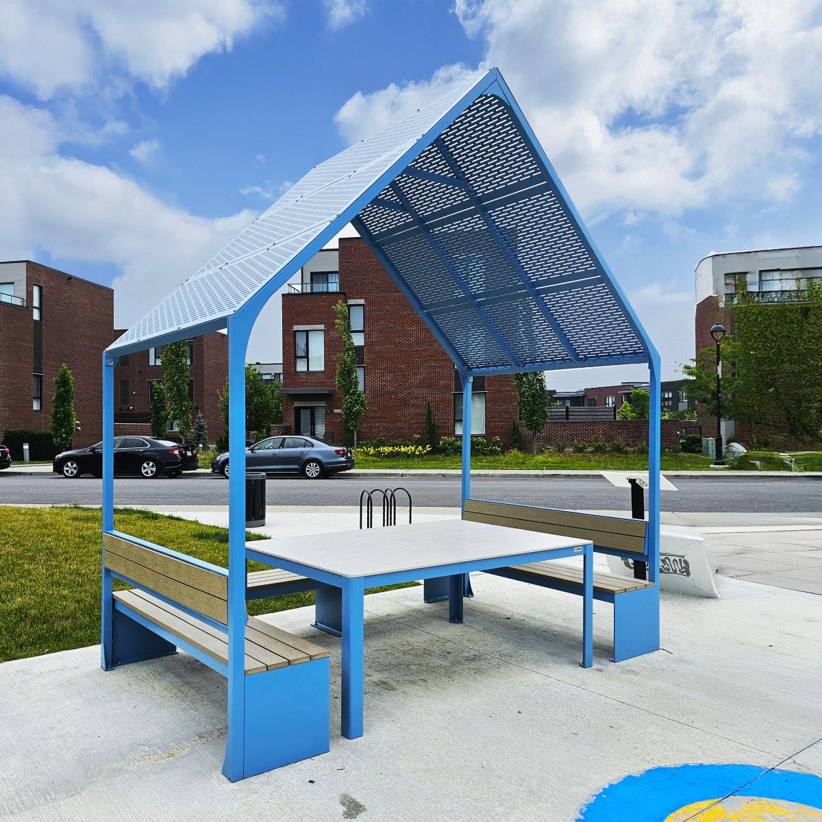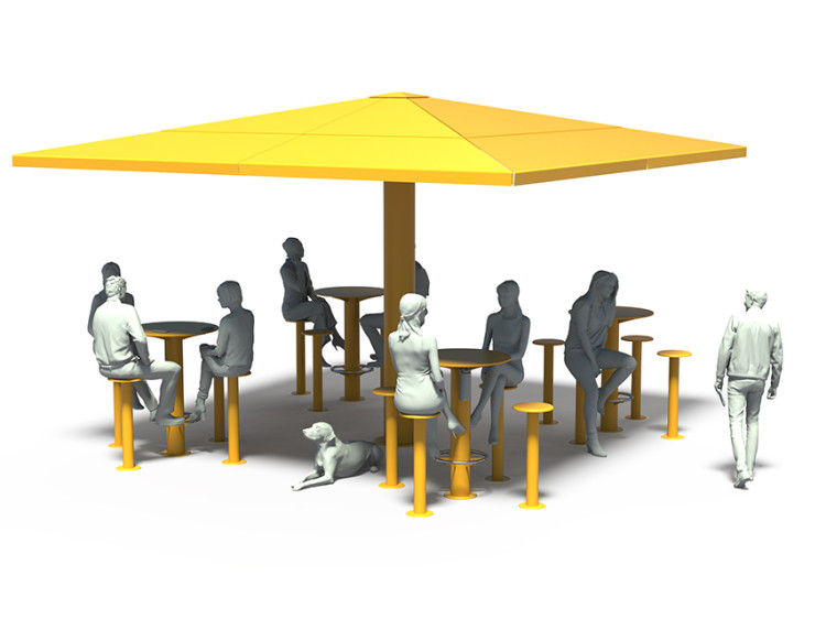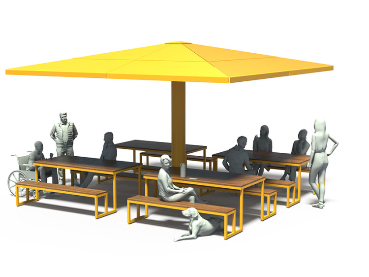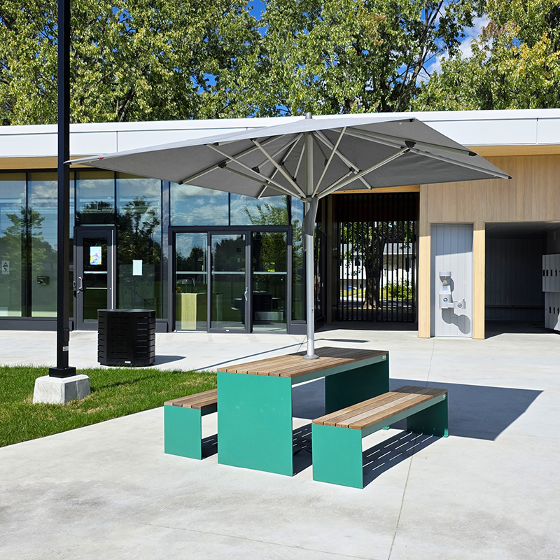 mobilier urbain avec abri solaire - parasol métallique 4 saisons - mobilier urbain durable